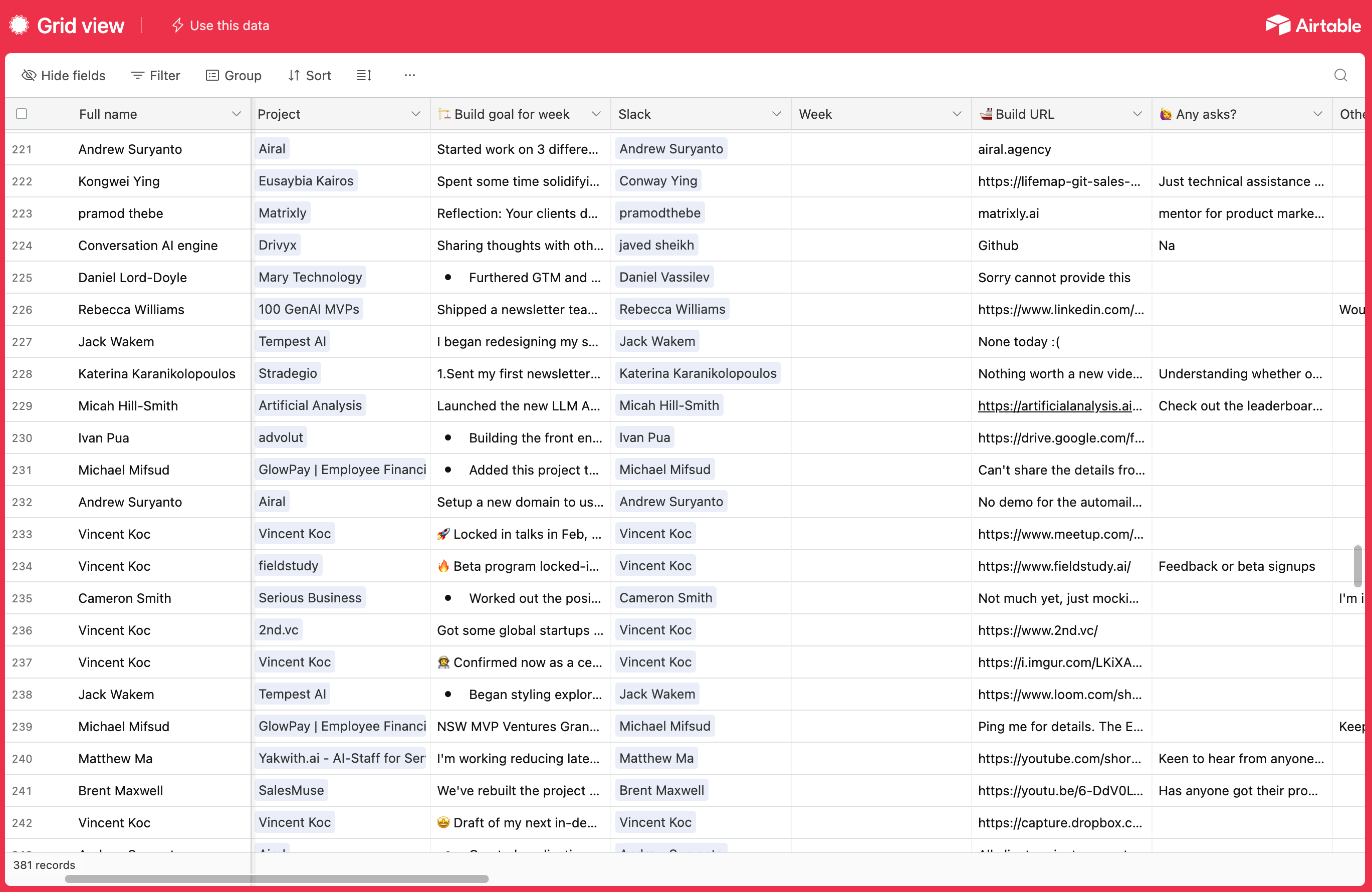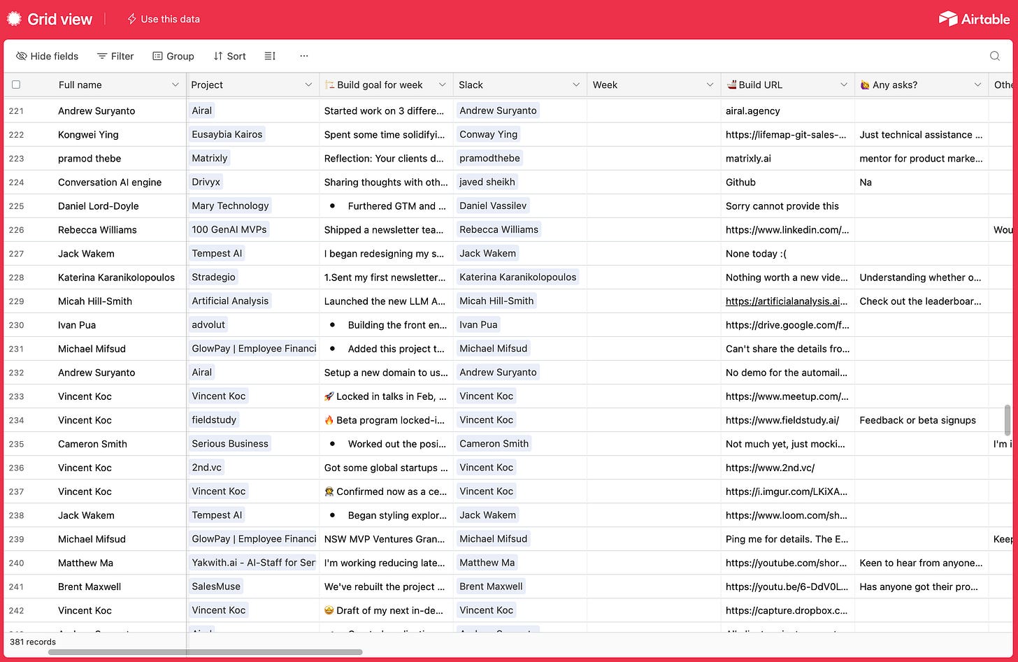 Each members name links to their LinkedIn profile, to make it as easy as possible for builders to connect with each other.